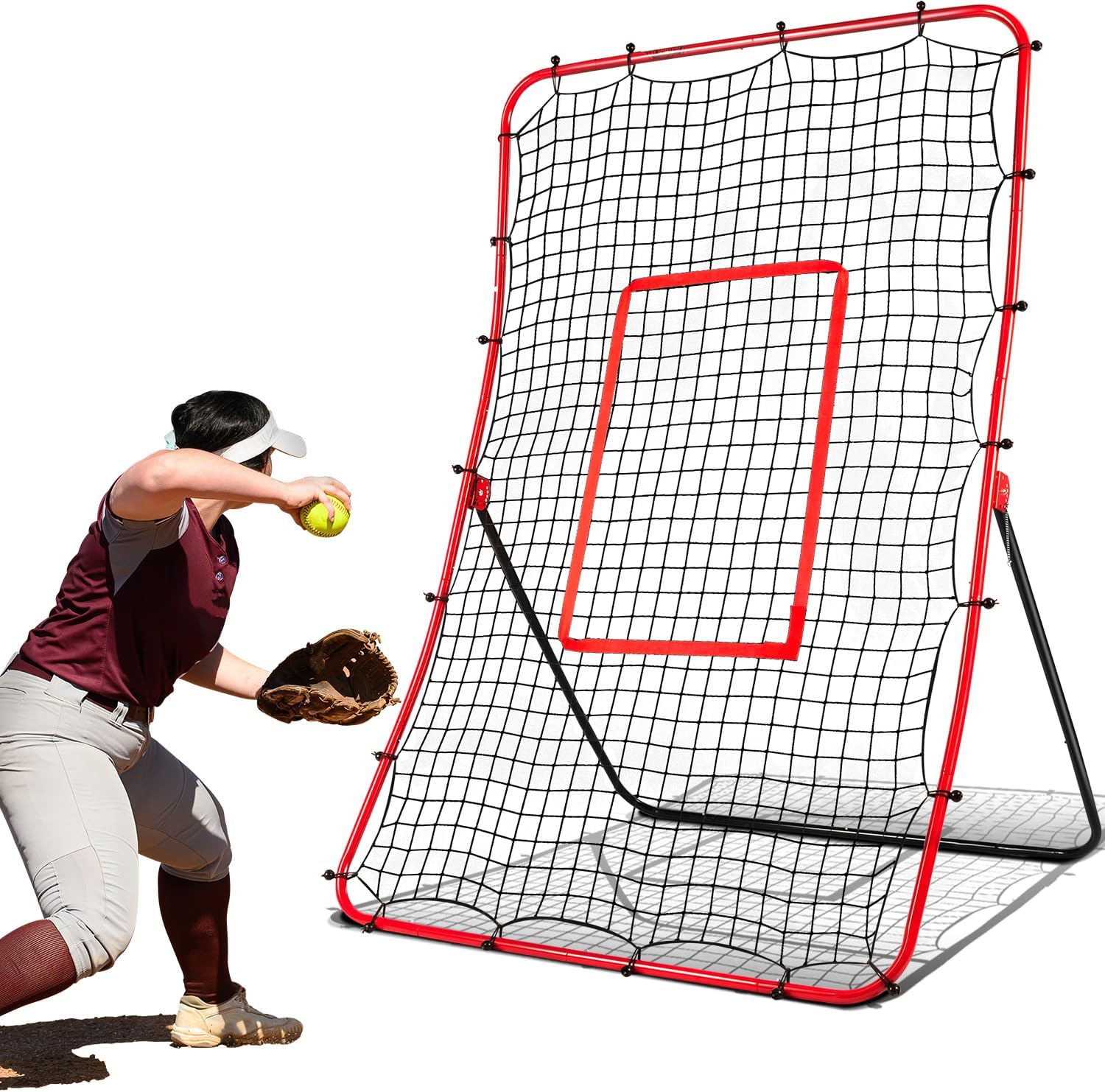 - ⚾【EASY ADJUSTABLE 5 ANGLES】The 68×44-inch rebounder net can be easily adjusted at 5 different angles to simulate real fly balls, ground balls, and line drives.allowing infielders and outfielders can use baseball rebounder net to improve their fielding and catching skills.