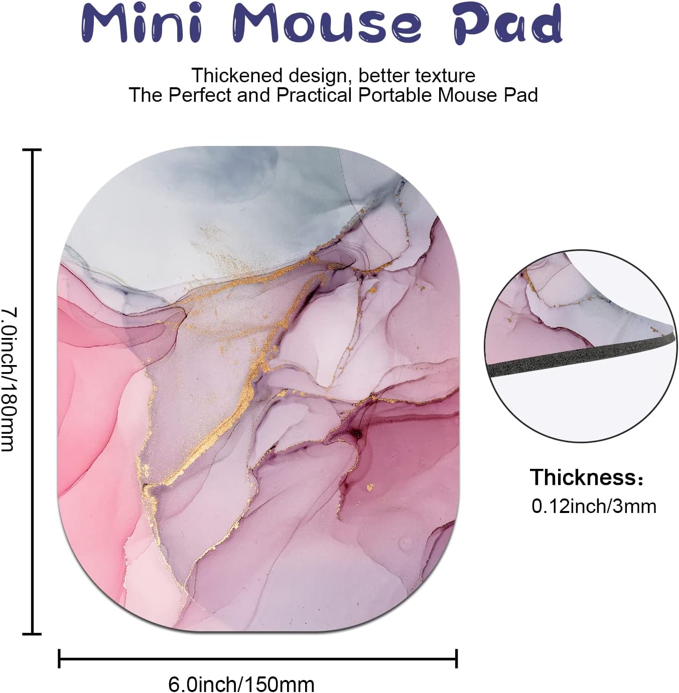 - The mini mouse pad measures 6 x 7 inches. Lightweight and portable mouse pad. It helps save desktop space and provides enough space to move the mouse. Great for narrow workspaces, travel mouse pads.